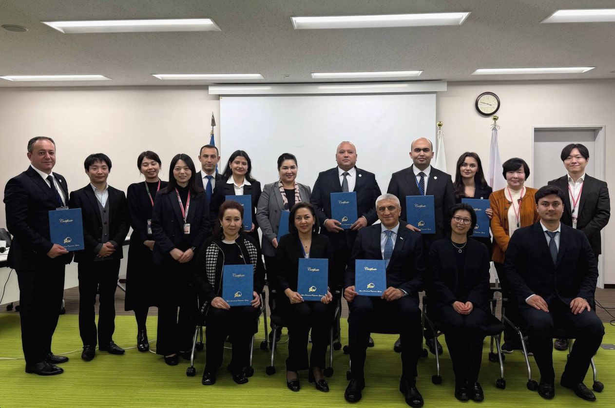 Жорий йилнинг 17-26 февраль кунлари Токио шаҳрида ҚҲСИ, Олий суд, Адлия вазирлиги, Нотариал палата, Одил судлов академияси ва ТДЮУ вакилларидан иборат ўзбек делегация JICA томонидан Япония ҳукуматининг техник кўмагида ташкил этилган фуқаролик қонунчилигини такомиллаштириш масалалари бўйича семинар-тренингда иштирок этди.